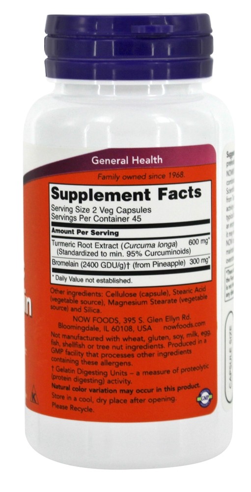 Os suplementos de cúrcuma e bromelina são populares aqui em LuckyVitamin . Revisores dar este NOW Foods produto saúde comum uma média classificação de 4,5 estrelas e dizer que é um dos melhores produtos de suplemento de curcumina cúrcuma com adicional benéfico bromelina. Nossas avaliações sobre Turmeric Bromelain são escritas por clientes reais do NOW e mostram que alguns revisores conseguiram tomar remédios para dor no balcão, alguns simplesmente não conseguem viver sem ele (!), E que a inflamação geral foi drasticamente reduzida.