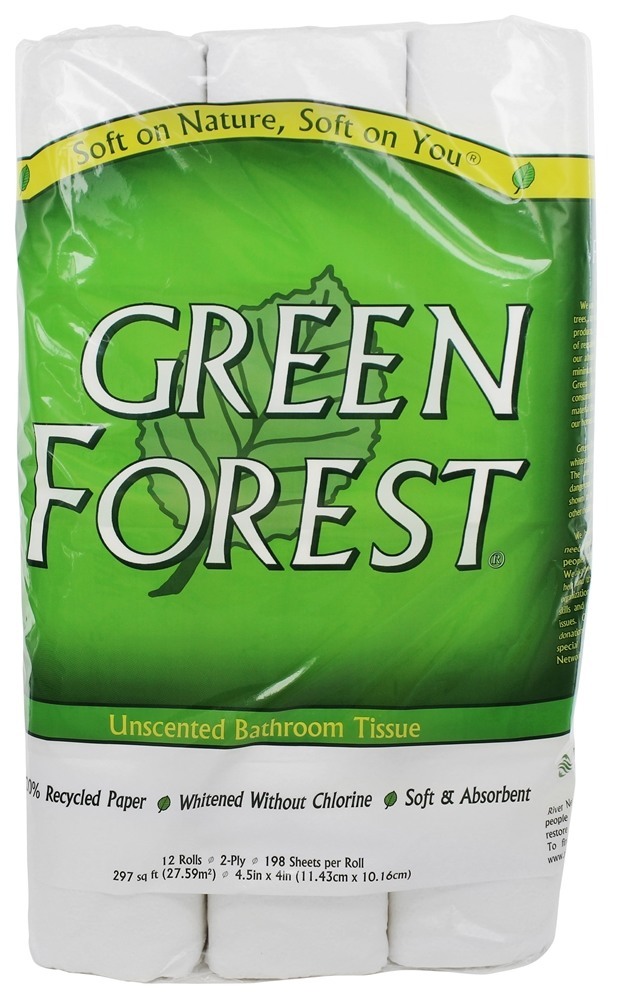 Comprar Banho de tecido 100 % reciclado 2-Ply 198 Sheets – 12 Rolo (s) Green Forest – Papel Higiênico – Produtos Naturais Para o Lar.