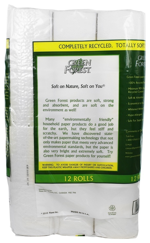 No início de 2006 , a Planet cumpriu sua promessa de melhorar as características ambientais de Green Forest. Embora os produtos Green Forest tenham sido feitos com 100 % de papel reciclado sob gestão da Georgia-Pacific, o conteúdo reciclado pós-consumidor teve uma média de apenas 15 % e os produtos foram clareados com cloro prejudicial. Sentimos que ambas as principais características ambientais poderiam ser melhoradas.