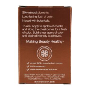 Bochechas Blush Mineral Fusion em pó 0.1 oz é o produto ideal onde comprar no Brasil para quem busca uma maquiagem natural com acabamento suave, sendo um blush de longa duração e com ingredientes naturais que não obstrui os poros, proporcionando um olhar saudável e um efeito radiante; é leve, arejado e de alta qualidade, perfeito para qualquer tom de pele, além de ser livre de crueldade e parabenos, garantindo um blush que realça as bochechas com um toque de cor duradoura, ideal para uso diário, fácil de aplicar e esfumar, sendo a escolha certa para quem quer um look sofisticado e fresco, combinando com qualquer maquiagem e proporcionando um acabamento natural e iluminado para todas as ocasiões.