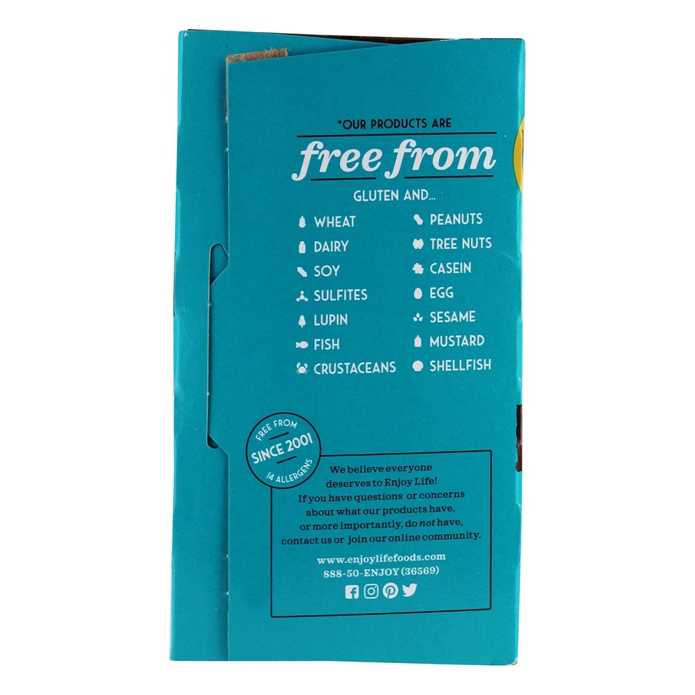 Todos os produtos Enjoy Life Foods estão livres dos oito alérgenos alimentares mais comuns nos Estados Unidos, como declarado pelo FDA – trigo, laticínios, amendoim, nozes, ovo, soja, peixe e marisco. Além disso, nossos produtos são feitos em sua instalação antialérgica, portanto não há chance de contaminação. Enjoy Life também está livre dos doze alérgenos alimentares prioritários do Canadá, que incluem os oito principais sulfitos, crustáceos, gergelim e mostarda.