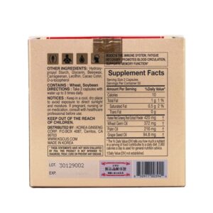 Se você é como a maioria das pessoas que se preocupam com sua saúde geral, sistema imunológico, sistema circulatório, memória, resistência e níveis de energia – Você provavelmente já toma suplementos. Adicionando cápsulas de ouro Ginseng vermelho coreano em sua rotina é fácil e vale a pena. Justo 2 fácil-para-engolir cápsulas acima para 3 vezes por dia é todos ele toma para colher o excepcional benefícios de Coreano Vermelho Ginseng.