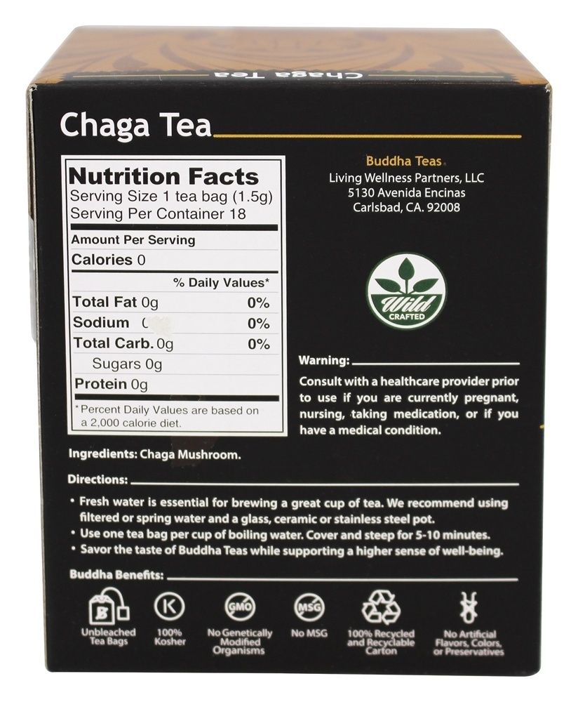 Comprar Chá Cogumelo Herbal Crafted Selvagem – 18 Saquinhos de Chá Buddha Teas – Chás de Chaga – Chás e Café.