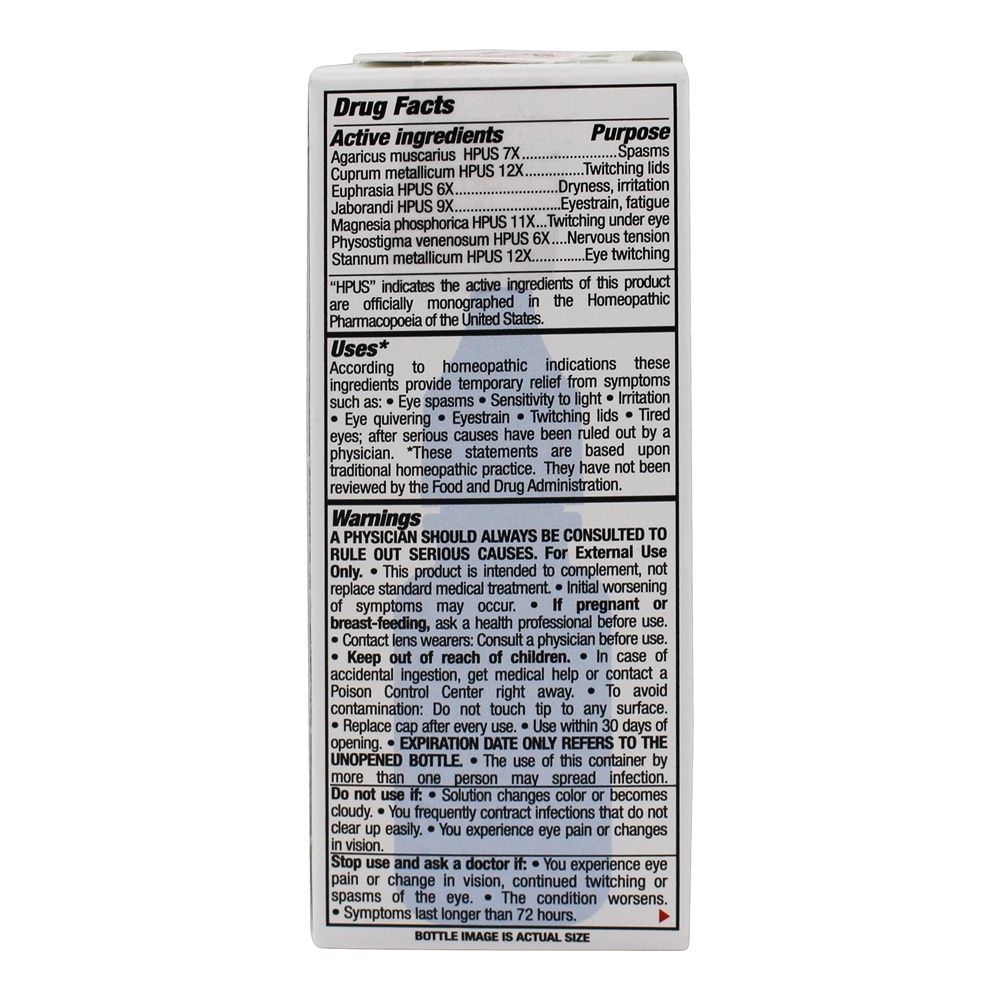 Espasmos Irritação. Olhos cansados. Obter alívio com alívio de contração dos olhos. Eye Twitching Relief Eye Drops é um colírio homeopático projetado para ser usado diariamente ou para espasmos oculares aleatórios durante espasmos ou espasmos na pálpebra. O Alívio da Contracção dos Olhos alivia temporariamente os sintomas, como contrair as pálpebras, espasmos, tremores, irritação, sensibilidade, cansaço ocular e olhos cansados. O Eye Twitching Relief é seguro e delicado de usar, sem efeitos colaterais conhecidos, interações com outros medicamentos ou contra-indicações.