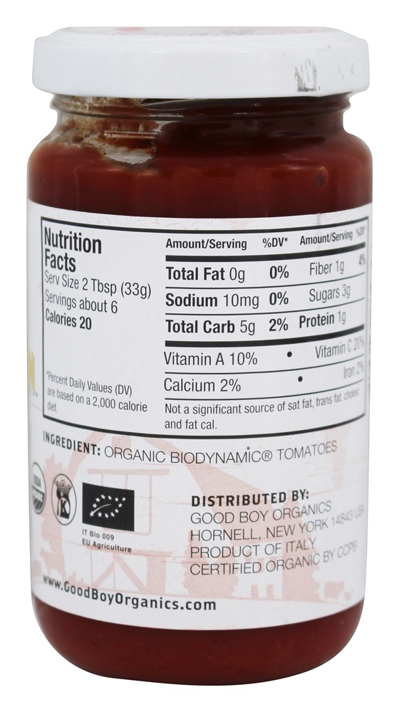 A: Longe disso. O tomates em seu Amarelo Celeiro Biodynamic produtos são crescido em o ideal condições de Italy’ Po planície, em estrito Biodynamic práticas que ajudar manter solo propriedades e garantir um consistentemente alto-qualidade colheita. Após o amadurecimento do sol quente de maio a setembro, eles são colhidos a poucos minutos de uma instalação de produção localizada na fazenda. De campo para frasco, todo o processo leva apenas algumas horas – seus tomates são tão frescos e doces que nunca precisam adicionar açúcar.