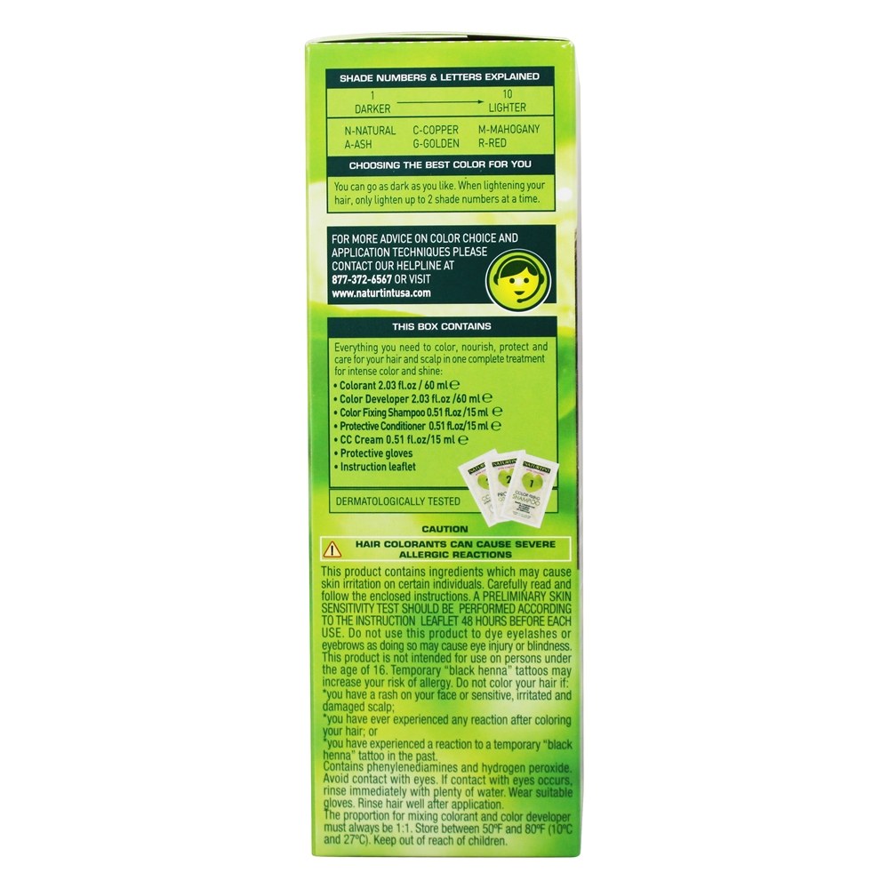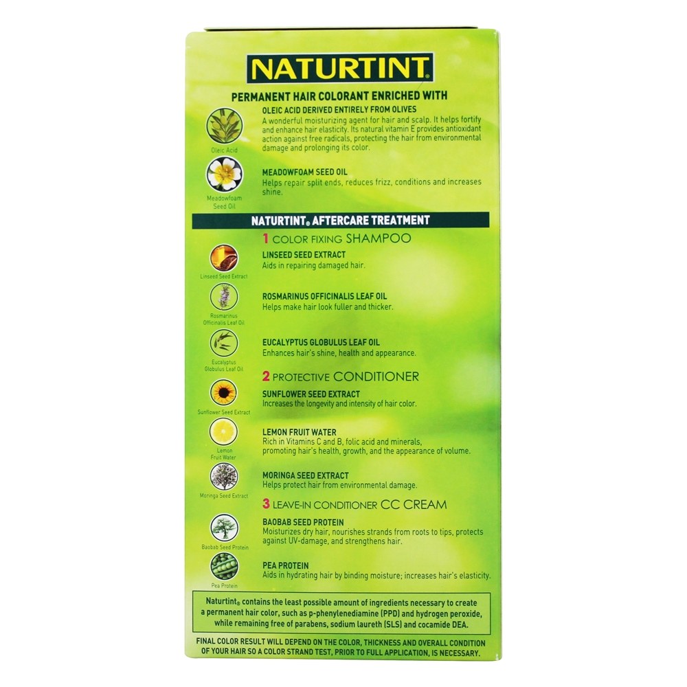 Com seu baixo teor de produtos químicos, Naturtint é mais gentil com seus cabelos e peles do que com os produtos de coloração tradicionais. Naturtint é enriquecido com ingredientes derivados de plantas e óleos de sementes, selecionados por suas propriedades benéficas para o cabelo e o couro cabeludo. Uma vez que é um corante permanente, contém alguns ingredientes químicos para colorir o seu cabelo.
