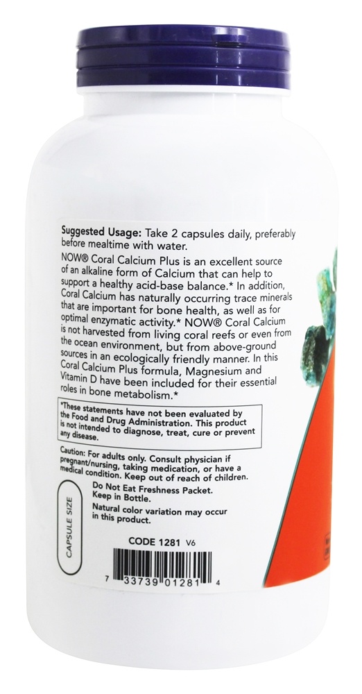 NOW Foods Coral Cálcio Mais contém um alcalino forma de Cálcio que lata ajudar para apoiar um saudável soro ph. Além disso, NOW Foods Coral Cálcio contém vários minerais que são importantes para a saúde dos ossos, bem como para a atividade enzimática ideal. NOW Foods Coral Cálcio é não colhida de vida coral recifes ou mesmo de o oceano ambiente, mas de acima-terreno fontes em Okinawa em um ecologicamente amigável maneira. Em NOW Foods Coral Cálcio Mais fórmula, Magnésio e Vitamina D ter sido adicionado porque de seu essencial papel em osso metabolismo.