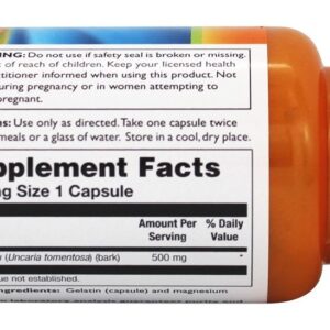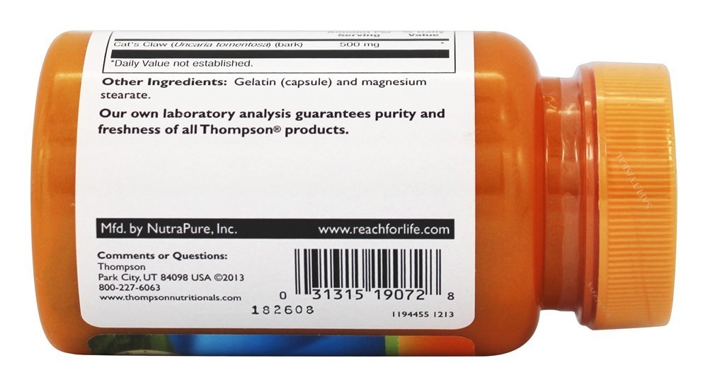 Thompson De gato Garra Una De Gato cápsulas conter 500mg de de gato garra, com fresco e saudável ingredientes.