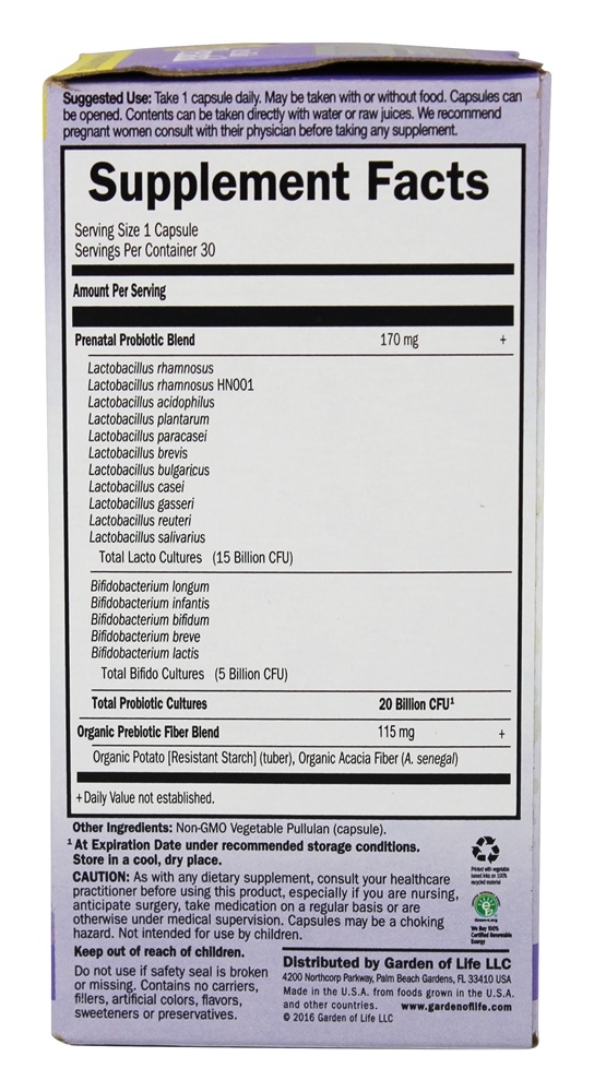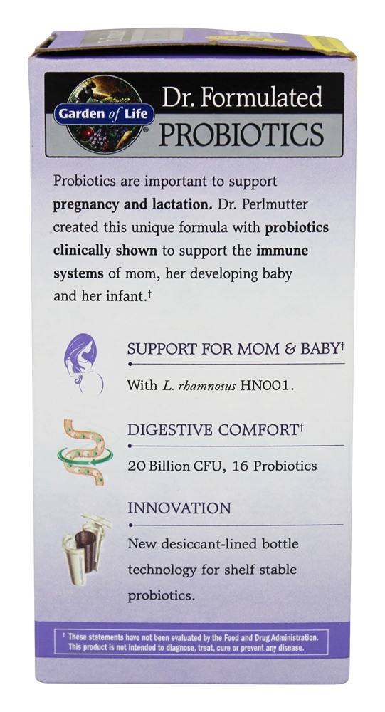 Garden of Life Doutor Formulado Uma vez Os probióticos pré-natais diários contêm 16 cepas probióticas e 20 bilhões garantidos. Os probióticos são importantes para apoiar a gravidez e a lactação. Dr. Perlmutter criou esta fórmula única com probióticos clinicamente demonstrados para apoiar o sistema imunológico da mãe, seu bebê em desenvolvimento e seu bebê.