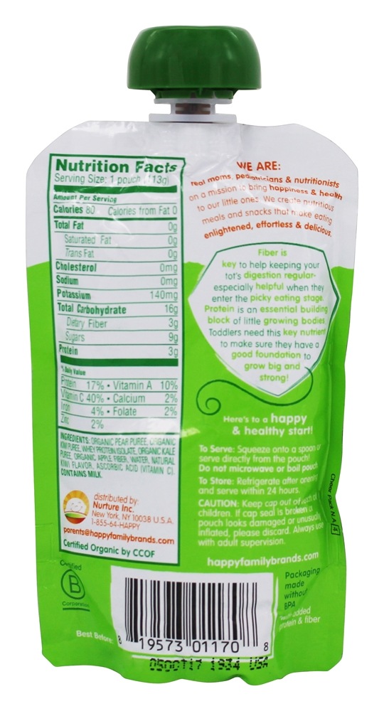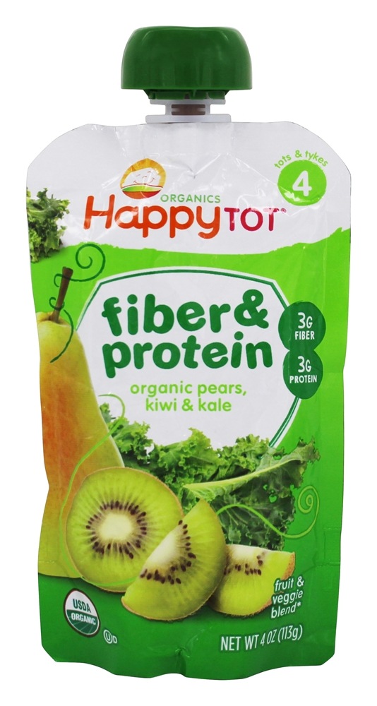 Família feliz – Happy Tot Fibra Orgânica & Proteína Pouch Pêras, Kiwi & Kale – 4 oz.