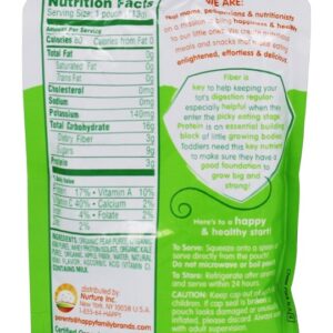 Feliz Família Happytot Orgânico Fibra & Proteína Bolsa Peras, Kiwi & Couve são um nutritivo lanche isso é completo de bom-para-você ingredientes. Esta deliciosa bolsa é o lanche perfeito para apoiar o crescimento de seu corpo energético e a saúde digestiva da criança. Cada porção contém 3g de proteína; 3g de fibra e uma excelente fonte de vitamina C.