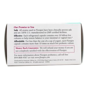 Florajen Acidophilus de Alta Potência de é especialmente eficaz para restaurar e manter um equilíbrio saudável e confortável da flora vaginal. Florajen também é benéfico para a saúde geral do intestino e para a manutenção do sistema imunológico.