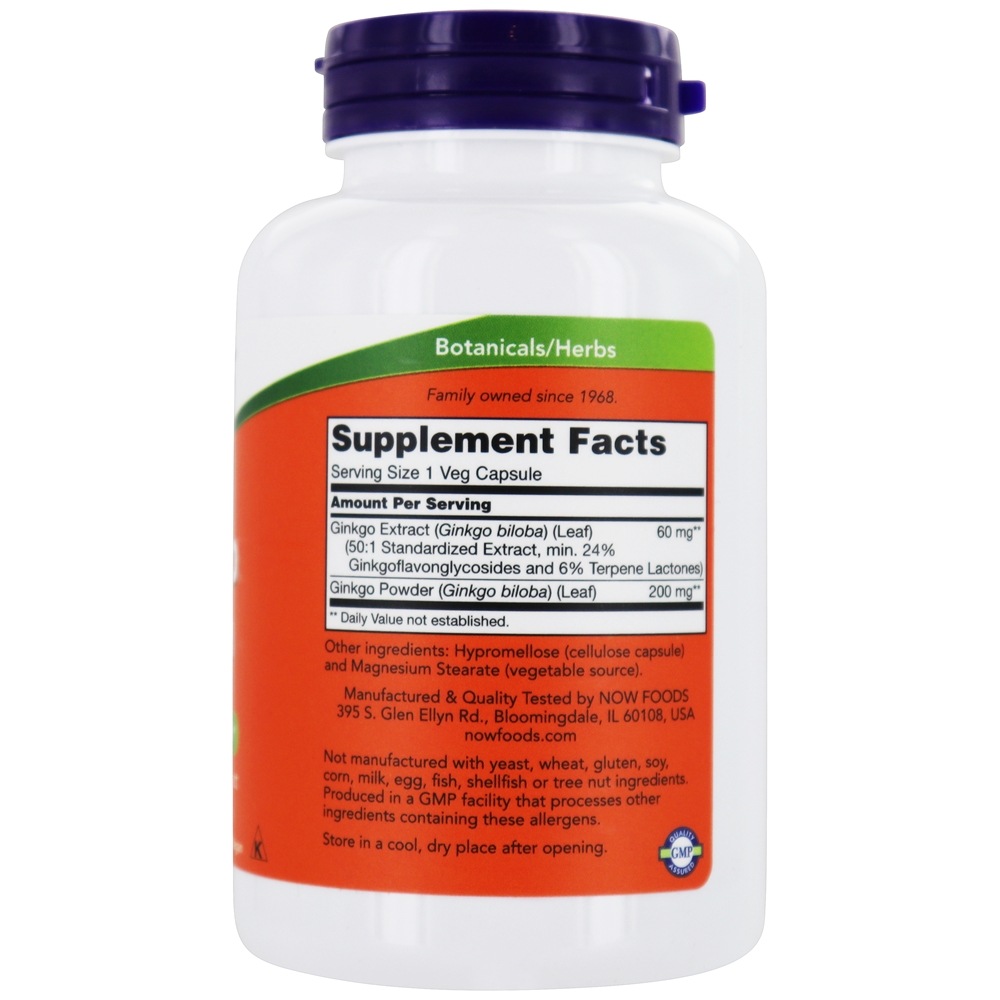 NOW Foods Ginkgo Biloba é a melhor qualidade disponível no mundo. A pesquisa científica demonstrou que o NOW Foods Ginkgo Biloba tem atividade antioxidante em estudos in vitro. NOW Foods Ginkgo Biloba é crescido e extraídos em o maior qualidade padrões e é padronizada para min. 24 % Ginkgoflavonglycosides e min. 6 % Terpene Lactones, incluindo Ginkgolide B, a fração mais significativa, e Ginkgolides A, C e Bilobalide.