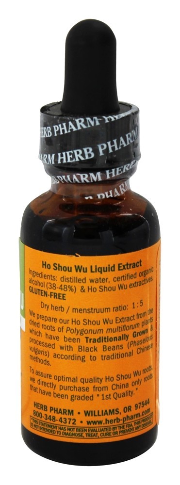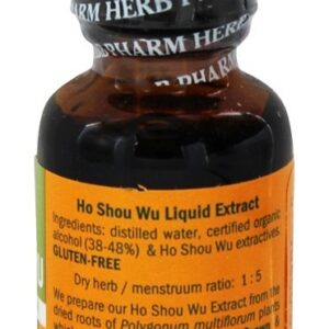 Herb Pharm Ho Shou Wu Extrair. Herb Pharm preparar seu Ho Shou Wu Extrair de o raízes de Polygonum multiflorum plantas que ter sido cultivado, colhida & processado com Preto Feijões (Phaselou vulgaris) segundo para tradicional Chinês métodos. Para garantir ideal qualidade Ho Shou Wu raízes, nós diretamente comprar de China apenas raízes que ter sido classificados “1st Qualidade”.