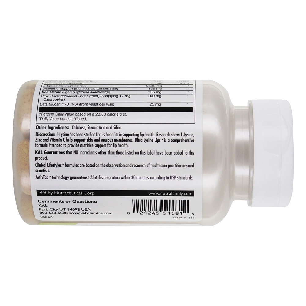 Kal Extremista Lisina Lábios é um imune sistema fórmula com L-Lisina, Vermelho Marinha Algas & Zinco. A L-lisina tem sido estudada por seus benefícios no apoio à saúde labial. A pesquisa mostra L-lisina, zinco e vitamina C ajudam a apoiar a pele e as membranas mucosas. Ultra Lysine Lips é uma fórmula abrangente destinada a fornecer suporte nutritivo para a saúde labial.
