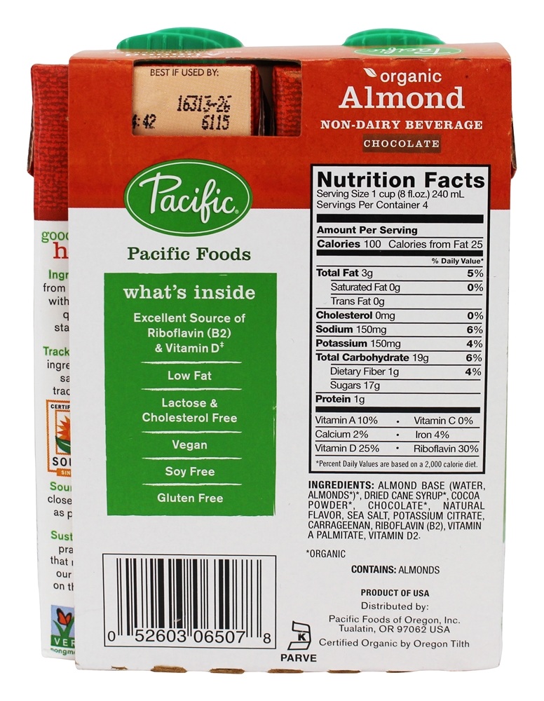 Com Pacífico Alimentos Orgânico Amêndoa Leite Chocolate eles tomar orgânico amêndoas e adicionar um suave assado para permitir seu natural sabor para brilhar através. O resultado é o sabor da assinatura que é um prazer beber no copo e combina perfeitamente com as suas receitas.