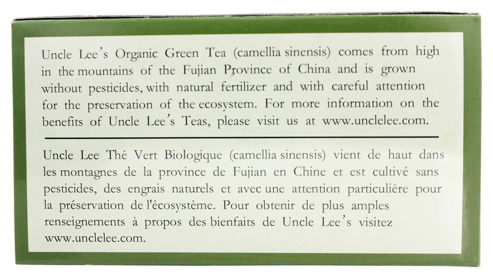 Uncle Lee’s Tea O chá verde orgânico é uma tradição antiga para a saúde atual. Quando se trata de chás verdes, ninguém sabe melhor do que o do Tio Lee. Eles criam chás finos há mais de 50 anos, combinando métodos tradicionais da China antiga com a tecnologia ocidental de hoje.