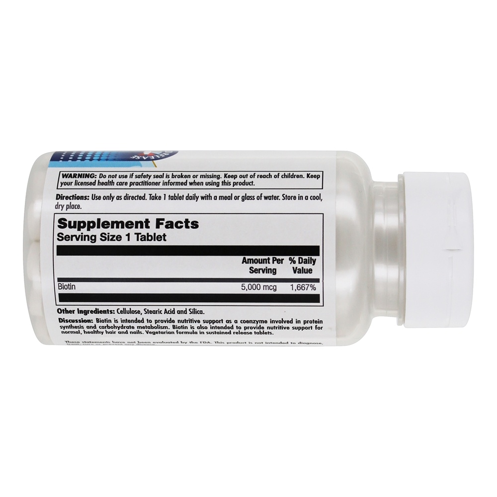 A biotina destina-se a fornecer suporte nutritivo como uma coenzima envolvida na síntese de proteínas e no metabolismo de carboidratos. A biotina também se destina a fornecer suporte nutritivo para cabelos e unhas normais e saudáveis. Fórmula vegetariana em comprimidos de liberação sustentada.