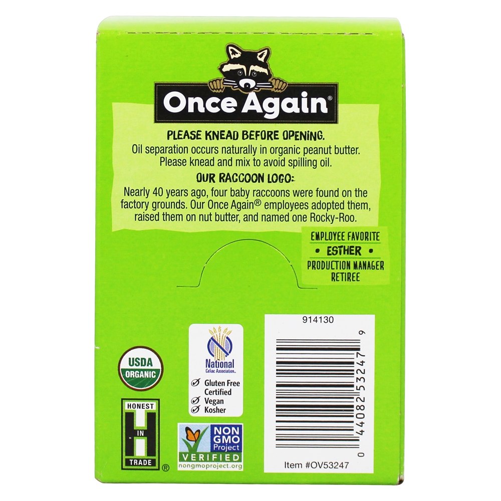 Once Again A manteiga de amendoim orgânica é vegana, kosher e sem glúten. Os amendoins orgânicos são torrados a seco e moídos. A separação do óleo ocorre naturalmente. Para evitar, mexa e refrigere ou congele. Once Again manteiga de amendoim oferece uma variedade de manteigas gourmet, todas veganas e a maioria também é orgânica. O que isso significa? Isso significa que você pode se sentir bem com os produtos que consome. Se você não tem boa saúde, o que você tem? Abasteça seu corpo do jeito certo, tudo natural. Eles se orgulham de sua alta qualidade e grande variedade de produtos naturais.