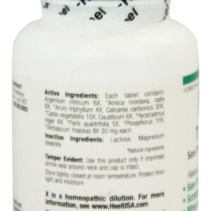 Ingredientes ativos: Arum triphyllum 4X, Paris quadrifolia 5X, Argentum nitricum 6X, Causticum 6X, Hyoscyamus niger 6X, Arnica montana, raiz 8X, Verbascum thapsus 8X, Carbo vegetal 10X, Fósforo 10X, Calcarea carbonica 30X.