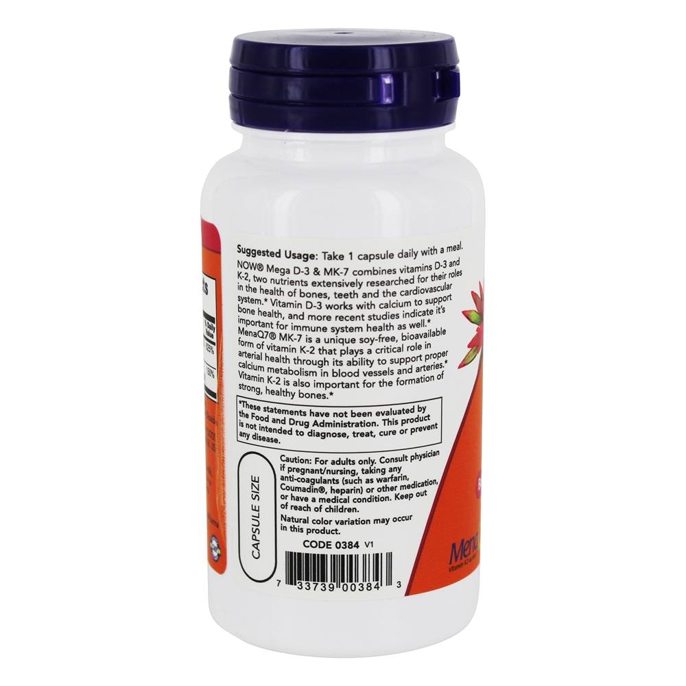 NOW Foods – Mega D-3 & MK-7 Bone & Suporte Cardiovascular – 60 Cápsulas
