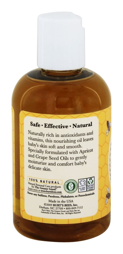 Burt’s Bees Bebê Abelha Nutritivo Bebê óleo é naturalmente rico em antioxidantes e vitaminas, este nutritivo óleo folhas bebê pele macio e alisar. Especialmente formulado com óleos de semente de uva e damasco para suavemente hidratar e confortar a pele delicada do bebê. Burt’s Bees O óleo para bebês é seguro, eficaz e natural.