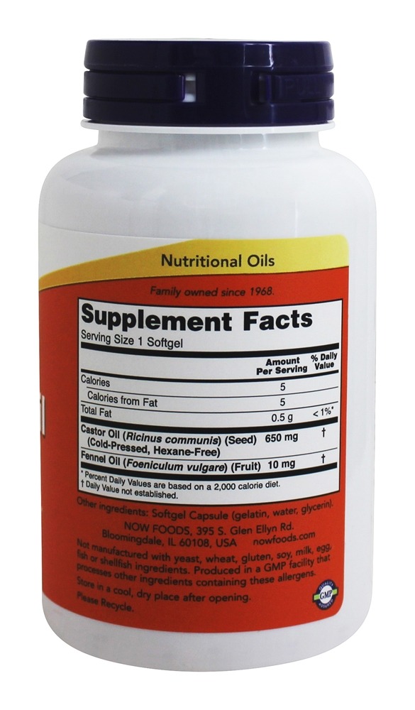 Comprar Óleo de Mamona 650 mg. – 120 Softgels NOW Foods – Saúde do Cólon, Limpeza & Laxantes – Suplementos Nutricionais.