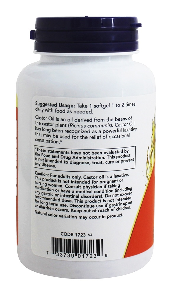O óleo de mamona da NOW Foods é um óleo derivado dos grãos da mamona. (Ricinus communis). O óleo de mamona é reconhecido há muito tempo como um laxante poderoso que pode ser usado para o alívio da constipação ocasional. Quando usado em combinação com o complexo de NOW Foods preto fresco verde da NOW, os softgels de óleo de mamona NOW Foods proporcionam uma limpeza intestinal eficaz.