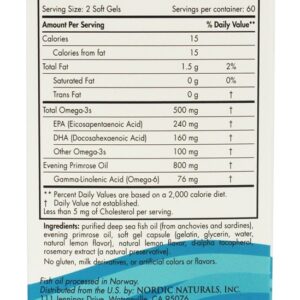 Nordic Naturals – Omega Para Mulheres Com Óleo de Onagra Sabor Limão 500 mg. – 120 Cápsulas gelatinosas