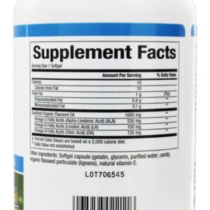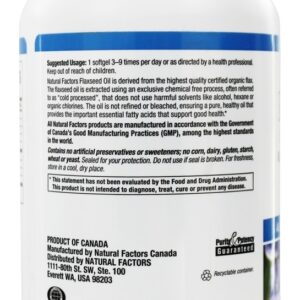 Natural Factors – OmegaFactors Óleo de linhaça elaborado com linho orgânico 1000 mg. – 180 Cápsulas gelatinosas