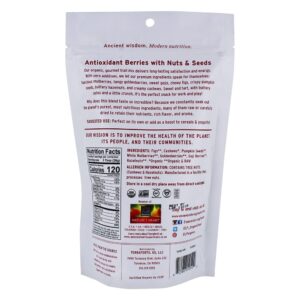 Bagas antioxidantes com nozes e sementes! Este mix orgânico de trilhas gourmet proporciona satisfação e energia duradouras. Com zero aditivos, os ingredientes premium falam por si: amoras suculentas, goldenberries picantes, gojis doces, figos mastigáveis, sementes de abóbora crocantes, avelãs amanteigadas e cajus cremosos. Doce e azedo com notas amanteigadas e um pouco crocante, é o lanche perfeito para trabalhar e brincar! Por que essa mistura prova tão incrível? Porque o Essential Living busca os ingredientes mais puros e nutritivos do planeta, muitos deles crus ou cuidadosamente secos para reter seus nutrientes, sabores ricos e aroma.