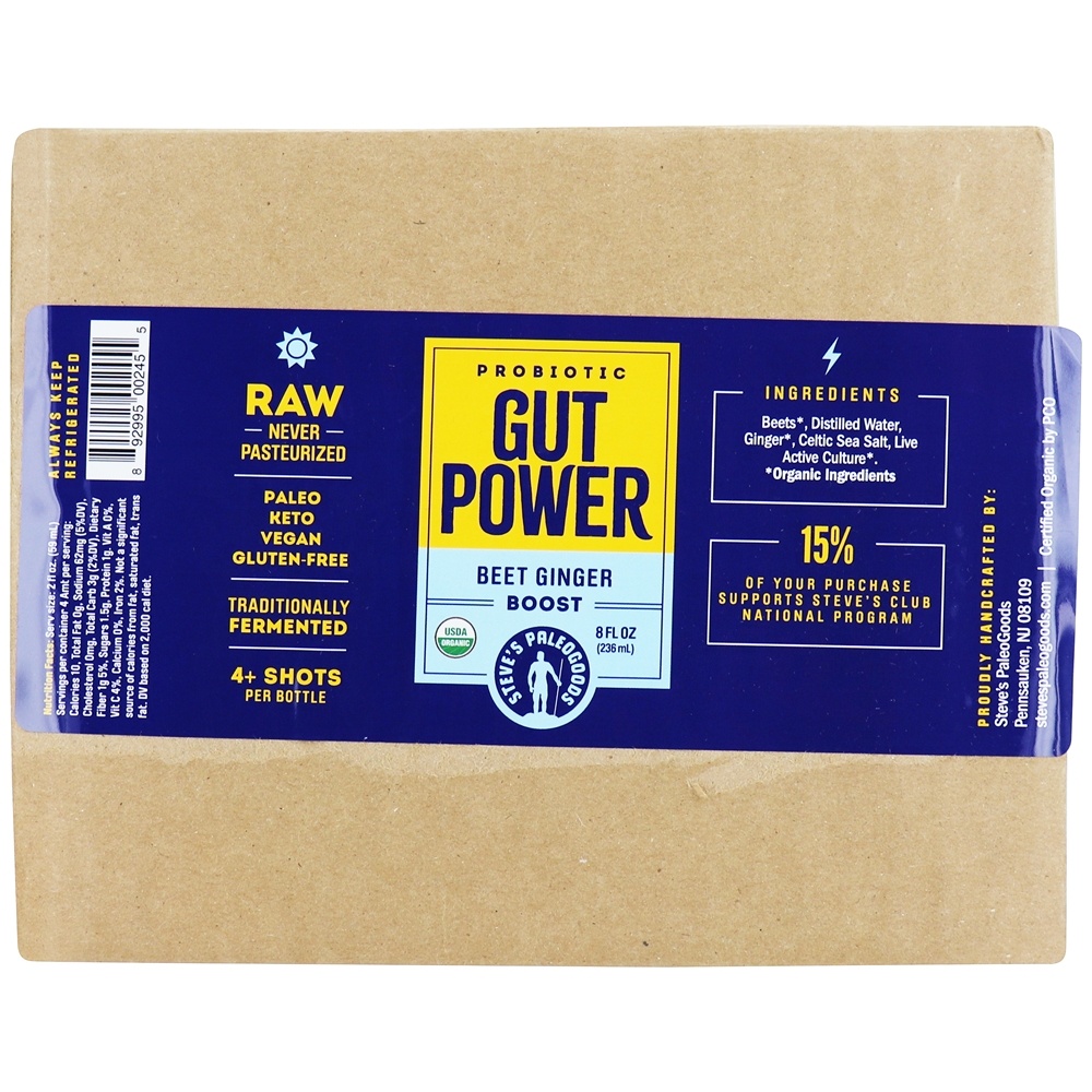 Steve PaleoGoods – Probiótico Gut Power Shot Beterraba Ginger Boost – 6 Pacote 8 fl. oz. Garrafas ( 236 mL cada)