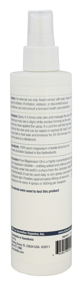 Life-Flo Pure O óleo de magnésio é um spray altamente concentrado de cloreto de magnésio puro. Nada adicionado, nada removido. Minerada profundamente sob a superfície da terra do Mar Zechstein, na Holanda. Pode ser usado diariamente, não é gorduroso e não deixa odor desagradável.