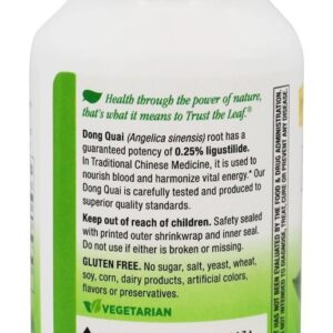 Nature’s Way Dong Quai Raiz é TRU-ID e não transgênico certificado. Dong quai (Angélica sinesi) raiz tem um garantido potência de 0.25% ligustilide. Na medicina tradicional chinesa, é usado para nutrir o sangue e harmonizar a energia vital. Nature’s Way dong quai é cuidadosamente testado e produzido para padrões de qualidade superiores. Saúde através do poder da natureza. Isso é o que significa “Confiar na Folha”.