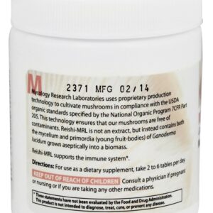 Mycology Research Labs pó de Reishi-MRL (Ganoderma lucidium) não é um extrato de Ganoderma lucidium, o pó contém micélio e primórdios (corpo de fruto jovem) cultivados em uma biomassa que é cultivada em um esterilizado (autoclavado ) substrato. Este processo de cultivo assegura que o pó seja livre de contaminação por outros fungos e que os pesticidas e metais pesados estejam ausentes. O sistema de cultivo é proprietário, permitindo a produção padronizada de Ganoderma lucidium. A biomassa do pó é então selada em recipientes de plástico. A biomassa Reishi-MRL contém micélio e primórdios (corpo de frutificação jovem) do respectivo cogumelo. Em comparação com os extratos Resihi, a biomassa tem a vantagem de não haver deslocamento de efeito indesejado que ocorre com extratos ou concentrados, incluindo a liofilização, e assim a atividade do produto corresponde ao cogumelo fonte, sendo intensificada ainda mais utilizando o micélio inteiro. A biomassa de micélio de cogumelos oferece uma mistura de muitos ingredientes biodisponíveis saudáveis, co-operacionais e co-relacionados, preparados pela própria natureza – é, portanto, um produto natural verdadeiramente puro. Os cogumelos gastam mais do que 90 % do seu ciclo de vida no micélio. Como os cogumelos não podem produzir sua própria energia através da fotossíntese, o micélio deve ser capaz de obter ativamente ou produzir compostos extracelulares e metabólitos que promovam a longevidade e a vitalidade do cogumelo vivo. Estas propriedades estão por trás da alta atividade enzimática do micélio, que permanece preservada nos produtos MRL cuidadosamente processados.