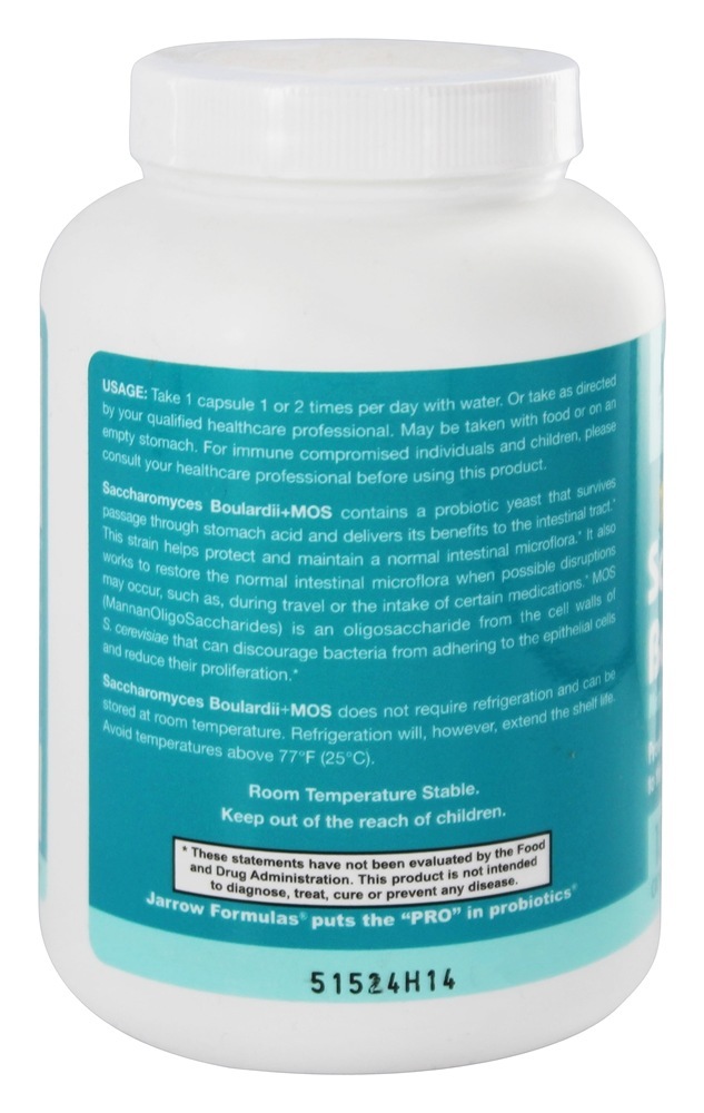 Jarrow Formulas Saccharomyces Boulardii + MOS é um probiotic levedura que sobrevive estômago ácido e coloniza o intestinal trato. Ele promove o saúde de o intestinal trato, ajuda proteger sua benéfico microbiota, e aumenta imune função. MOS (Mannanoligosaccharid) é um oligossacarídeo de o célula paredes de s. cerevisiae que lata desencorajar bactérias de aderente para o epitelial células e reduzir seu proliferação. Jarrow Formulas coloca o “Pró” em probiotic!