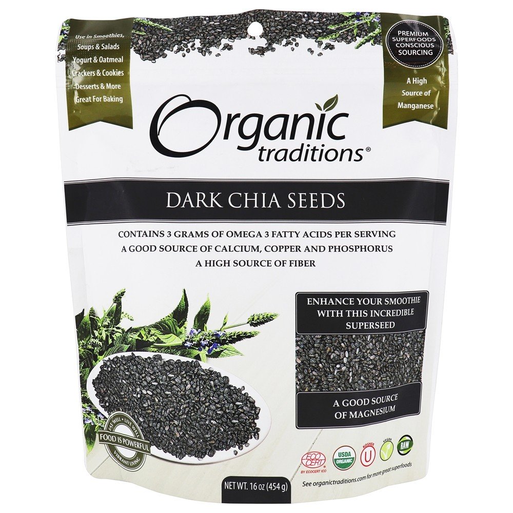 Organic Traditions – Sementes de Chia escuras – 16oz. (454g)