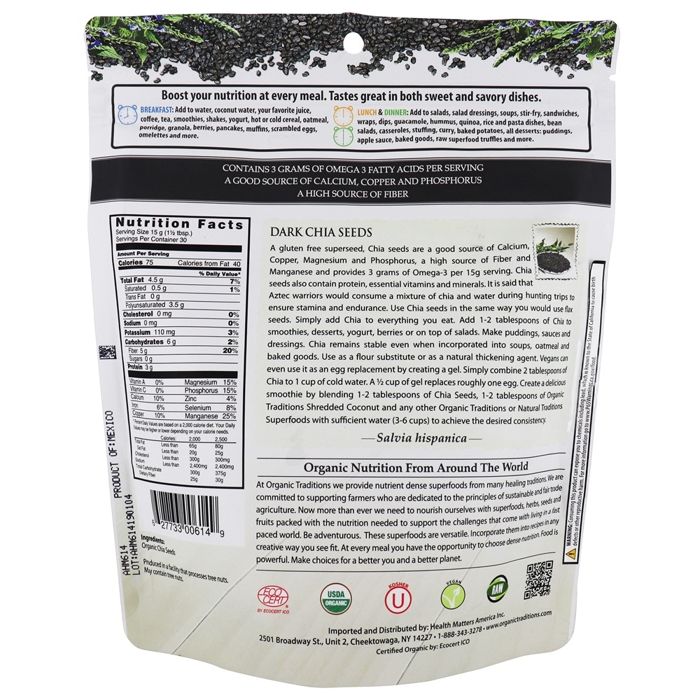 Comprar Sementes de Chia escuras – 16 oz. Organic Traditions – Alimentos & Lanches – Sementes de Chia.