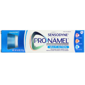 SENSODYNE PRONAMEL® Multi-Action toothpaste is formulated to help protect against the effects of acid erosion and also gently, yet effectively remove stains, helping restore teeth to their natural whiteness. As it contains fluoride it also provides the benefits of a regular toothpaste. Plus, its cleansing mint flavor helps keep your mouth feeling fresh and clean.