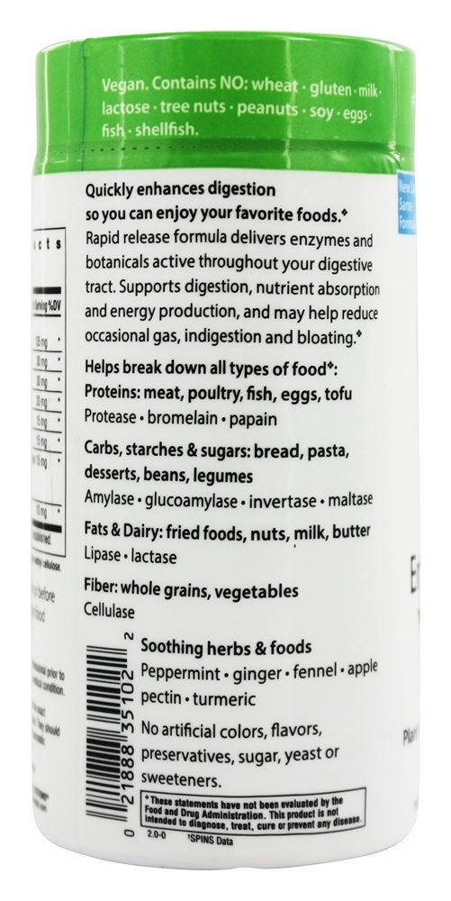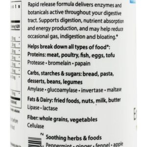 Rainbow Light Avançado Enzima Sistema usa um calmante botânico misturar de um completo espectro de potente enzimas para facilidade digestivo desconforto. Avançado Enzima Sistema fórmula fornece um alvo comida e de ervas misturar que é rico com ativo enzimas que fornecer alívio de digestivo desconforto incluindo ocasional indigestão, gás, inchaço e prisão de ventre. Avançado Enzima Sistema é potente e eficaz, com um amplo Ph alcance de 100% planta-fonte enzimas incluindo escovar fronteira enzimas para mais ajudar quebrar para baixo diferente tipos de comida, incluindo difícil-para-digerir carboidratos.