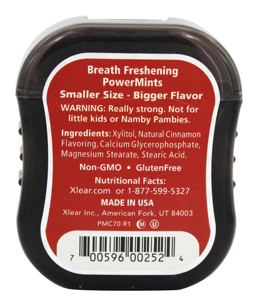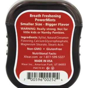 Xlear ágil Extra Forte Xilitol Poder Balas Canela não apenas refrescar sua respiração, mas eles também defender contra dental saúde problemas. Cada hortelã tem. 5 g de xilitol – um adoçante natural. O xilitol também não permite que as bactérias grudem nos dentes. Essa qualidade significa que as bactérias não podem colonizar na boca. Porque eles não podem prosperar, eles também não podem produzir seu bi-produto, ácido, que é o culpado para cáries e cáries.