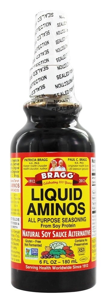 Bragg Líquido Aminos é um saudável alternativa para Soja e Tamari molho. Nenhum sal ou conservantes de mesa são adicionados.