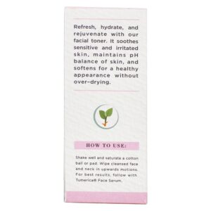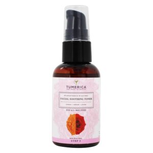Tumerica Facial Soothing Toner ajuda a refrescar, hidratar e rejuvenescer seu rosto. Acalma a pele sensível e irritada, mantém o equilíbrio do pH da pele e suaviza para uma aparência saudável sem secar excessivamente.