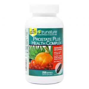 O Complexo de Saúde da Próstata Plus da TruNature contém licopeno, sementes de abóbora e Saw Palmetto, ingredientes que contêm fitonutrientes e ácidos graxos que podem ajudar a manter uma próstata saudável.
