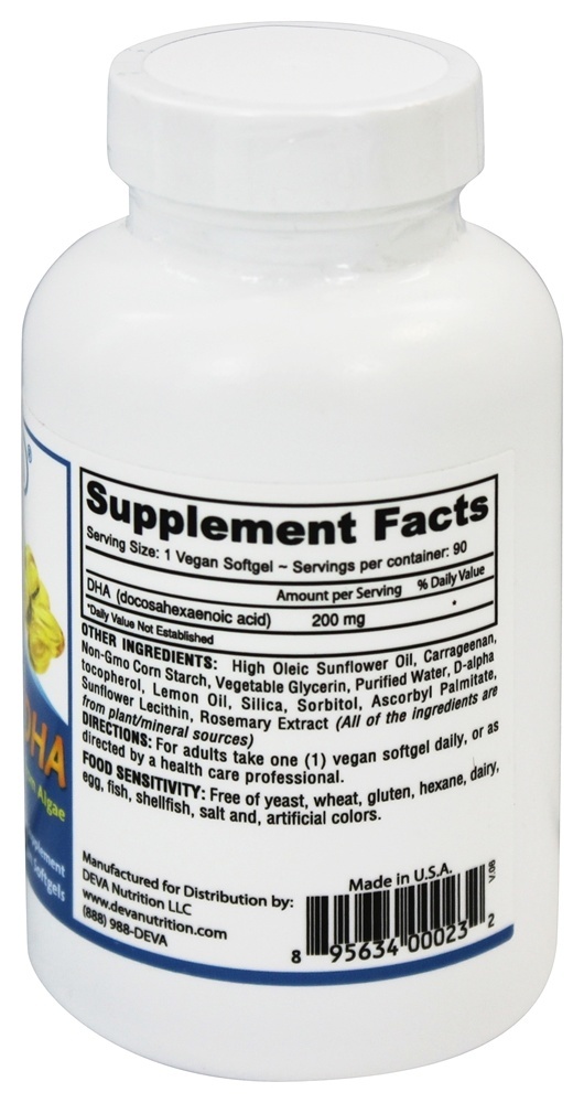 DEVA Vegan Omega – 3 DHA é um produto de qualidade derivado de algas e embalado em cápsulas moles não animais feitas de carragenina e amido. Isso é uma excelente alternativa ao óleo de peixe e pode ser usado com segurança por vegetarianos e vegans. Os veganos são particularmente propensos a dietas pobres em ácidos graxos ômega-3.