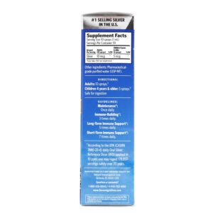 Suporte imunológico de curto prazo: 7 vezes por dia.† De acordo com a DPA diária de referência de prata oral (RdF) aplicada pela EPA (CASRN 7440 – 22 – 4 aplicada a 10 ppm, pode-se ingerir 178,850 porções com segurança ao longo de 70 anos.
