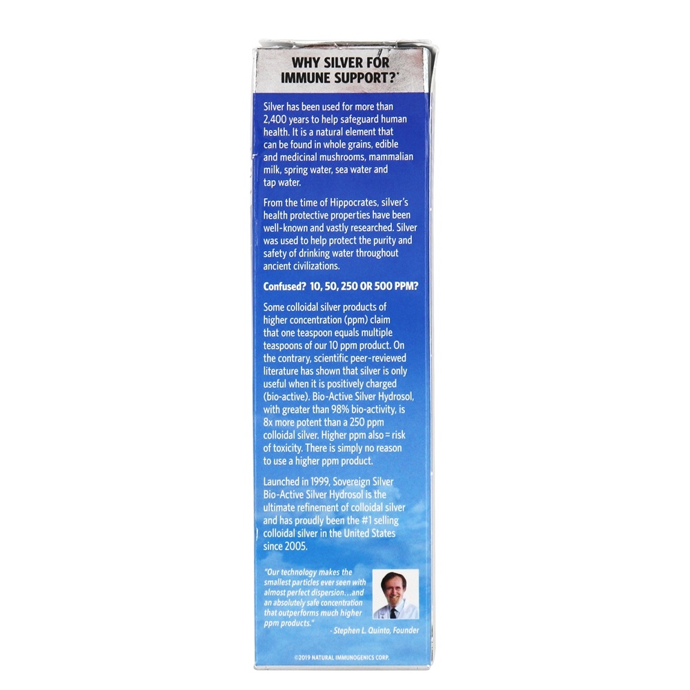 A prata tem sido usada há mais de 2,400 anos para ajudar a proteger a saúde humana. É um elemento natural que pode ser encontrado em grãos integrais, cogumelos comestíveis e medicinais, leite de mamíferos, água de nascente, água do mar e água da torneira. Sovereign Silver Spray Nasal Hydrosol de Prata Bio-Ativo 10 Ppm é um suplemento de suporte imunológico muito eficaz. Recentemente, a prata tem sido usada principalmente na prevenção de gripes e resfriados. Sovereign Silver spray nasal Bio-Active Silver Hydrosol está livre de ovo, trigo, soja, glúten, lactose e laticínios. Também é vegetariano e hipoalergênico.