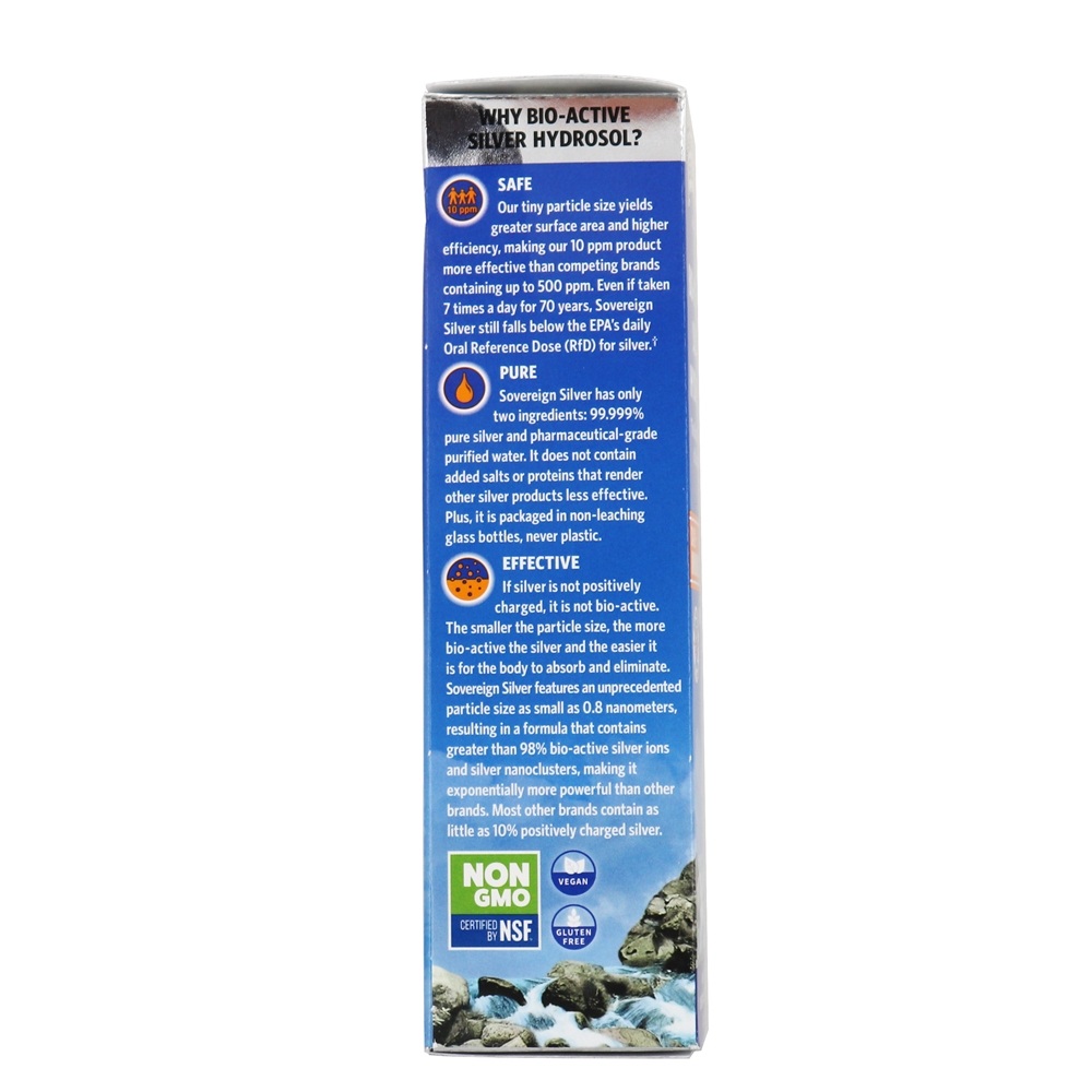 - O tamanho de partícula ultra-pequeno do Sovereign também resulta em uma área de superfície de prata maior. É por isso que mesmo com uma baixa concentração de 10 ppm, Sovereign Silver ainda é muito mais eficaz do que as marcas que contêm até 500 ppm.