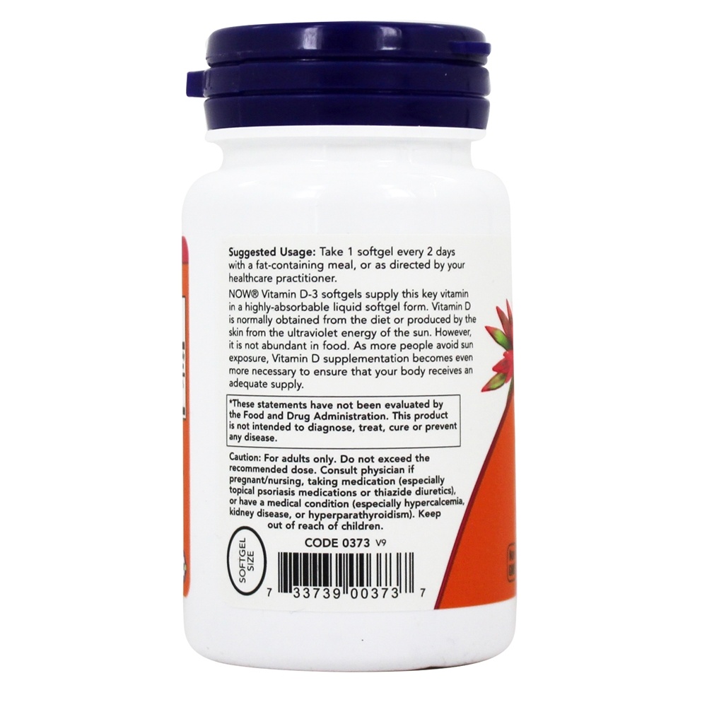 A vitamina D3 da NOW é uma das melhores marcas de suplementos de Vitamina D disponíveis. Ela fornece uma dose de alta potência de 5,000 UI de vitamina D-3 importante para suporte estrutural corporal, manutenção de ossos fortes e suporte ao sistema imunológico. O suplemento de vitamina D é um dos melhores suplementos dietéticos que você pode adicionar à sua rotina diária de saúde. As cápsulas de vitamina D, especificamente estas da NOW Foods, são fáceis de tomar e necessárias apenas uma vez a cada 2 dias com uma refeição contendo gordura para a absorção adequada. Este suplemento de vitamina D3 é feito de colecalciferol (de lanolina), que é a forma natural de vitamina D que seu corpo é capaz de produzir a partir da exposição à luz solar. É livre de milho, leite, ovo, glúten e soja. Além disso, a Vitamina D3 de 5,000 UI da NOW Foods é Kosher, Halal, não-transgênica e contém poucos níveis de sódio. A NOW Foods fornece suplementos testados pela sua pureza e alta qualidade que corrigem as deficiências nutricionais de sua dieta e ajudam a manter a sua saúde e bem-estar.