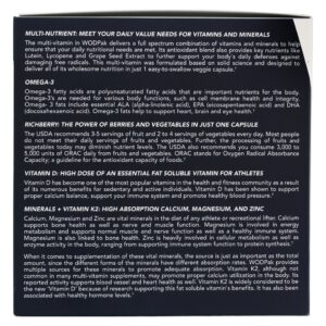 O multivitamínico em seu WODPak oferece uma combinação completa de vitaminas e minerais para ajudar a garantir que suas necessidades nutricionais diárias sejam atendidas. Sua mistura antioxidante também fornece nutrientes essenciais como Luteína, Licopeno e Extrato de Semente de Uva para apoiar ainda mais as defesas diárias do organismo contra os radicais livres. - Ômega-3